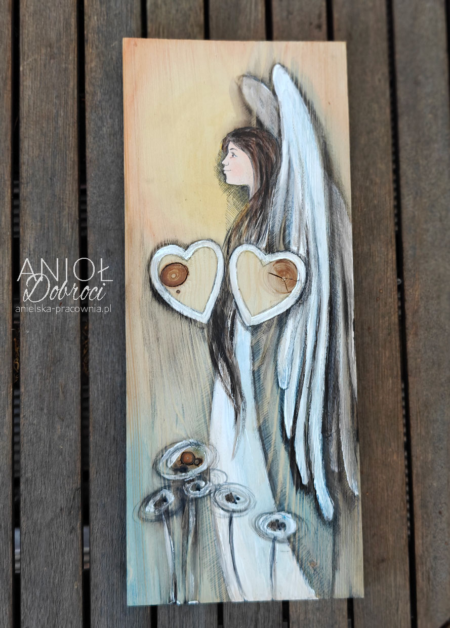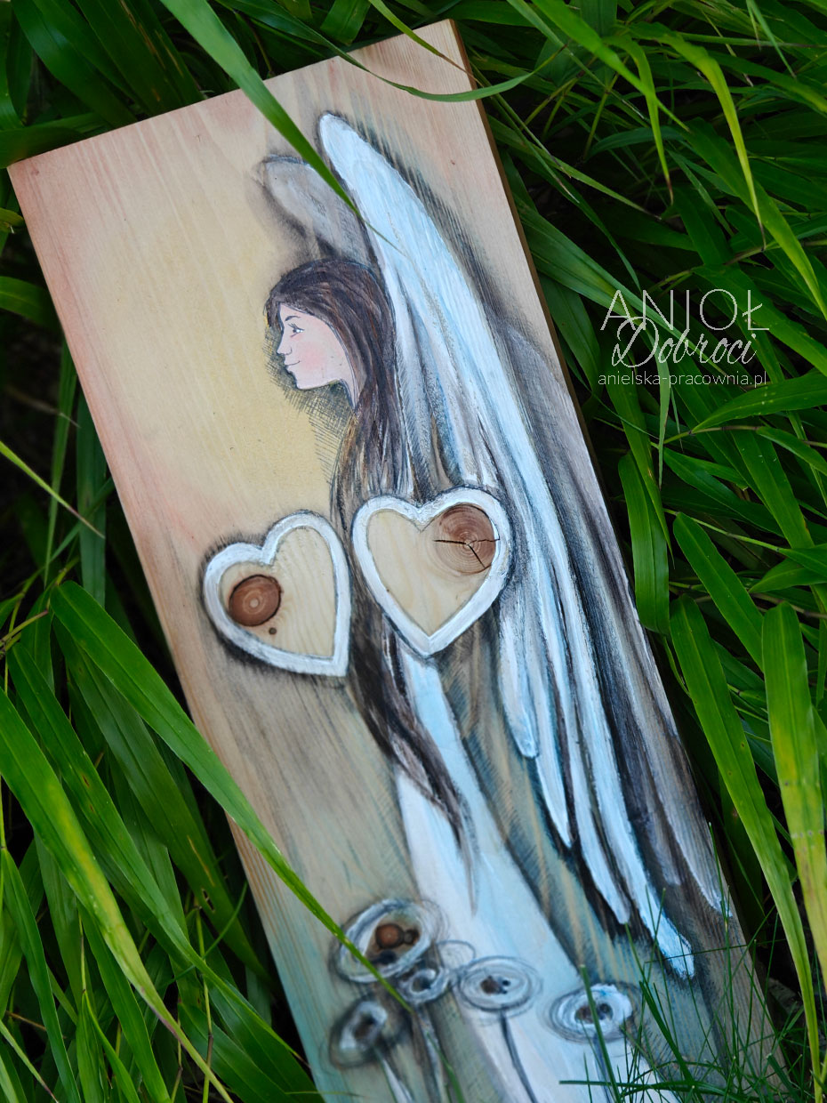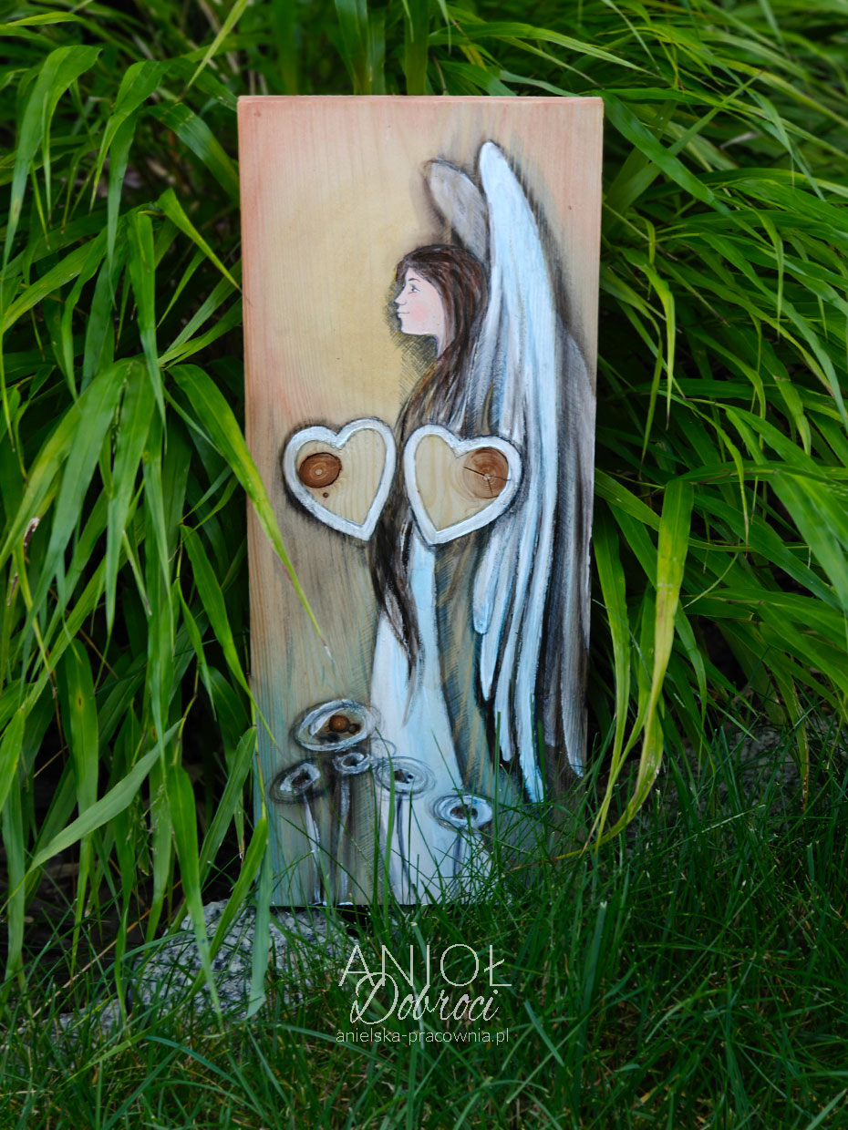 | Rewers | Na odwrocie wpisana jest nazwa Anioła i sygnatura autora oraz przymocowana jest zawieszka do zawieszenia na ścianie. A jeśli zamówisz usługę grawerowania, to grawer z dedykacją również znajdzie się na odwrocie Anioła. |