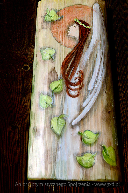 | Rewers | Na odwrocie wpisana jest nazwa Anioła i sygnatura autora oraz przymocowana jest zawieszka do zawieszenia na ścianie. |