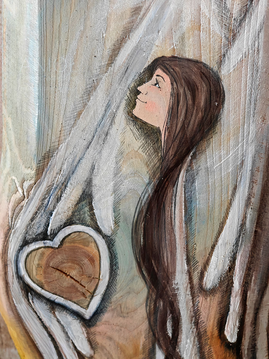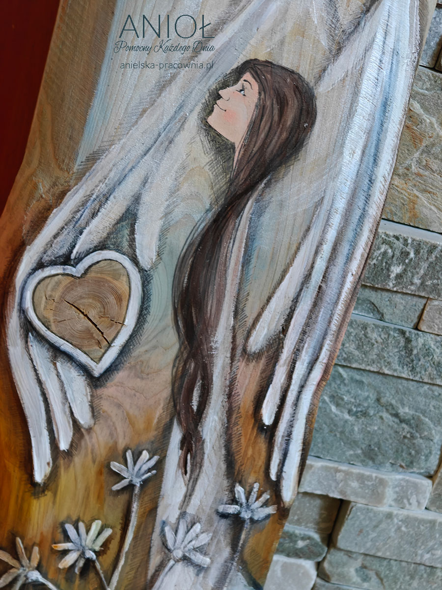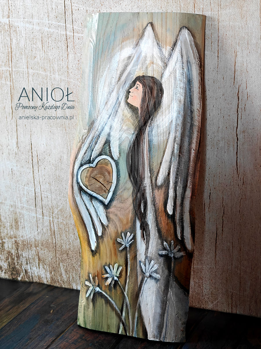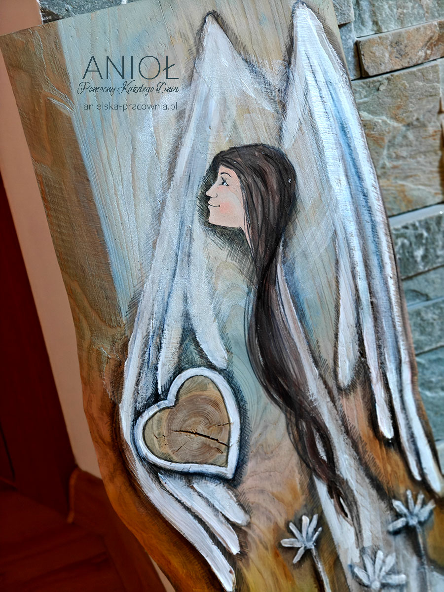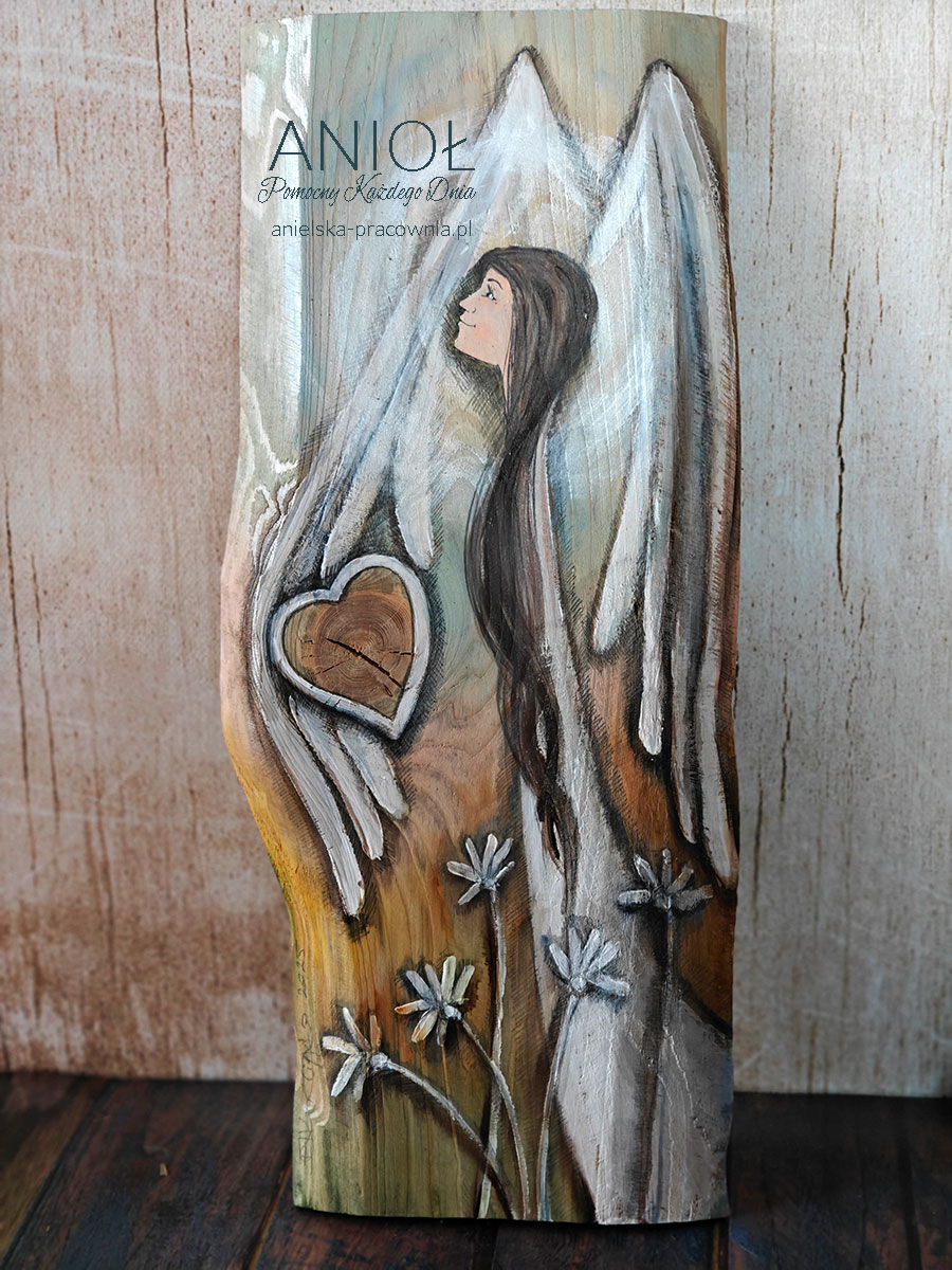 | Rewers | Na odwrocie wpisana jest nazwa Anioła i sygnatura autora oraz przymocowana jest zawieszka do zawieszenia na ścianie. |